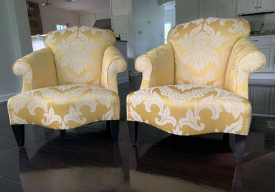 Boaz floral club chair with nailhead trim.
