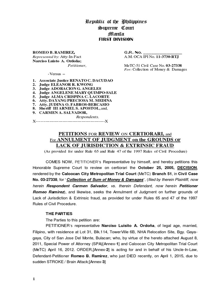 Transfer petition format in supreme court. Docx, pdf, txt or read online from scribd. In the philippines, spouses have the duties to live together, observe mutual love, respect and fidelity, and render mutual help and support and these are embodied under the family code of the philippines. The address of the authority to whom request is made, the body that briefly states the problem, unfairness or injustice along with other relevant background information showing the importance of what you are fighting for and at. Citizen or lawful permanent resident, then as soon as you and your immigrant spouse are married, you can file the petition for alien. The grounds for legal separation may have arisen after the marriage, and may be filed on the following grounds: Template sample > templates > sample petition forms signatures. 19+ sample petition letter templateswhat is a petition letter & why is it valuable?common misconceptions about petitions: In 2017/18, the government unfairly restructured the methodology applied to determine rates and land tax for strata residences generating an additional increase in each residence's rates. A petition can be a potent civic weapon only when it is used properly. A petition under article 139a(2) of the constitution and/or section 25 of the code filed under order xli of the rules shall state succinctly and clearly all relevant facts and particulars of the case and the grounds on which the transfer is sought supported by an affidavit. However, with some smart planning, you can easily make your petition look like it has been created by experts and legal letter formats what. Republic of the philippinesregional trial courtnational capital judicial regionbranch 104, quezon cityin re: